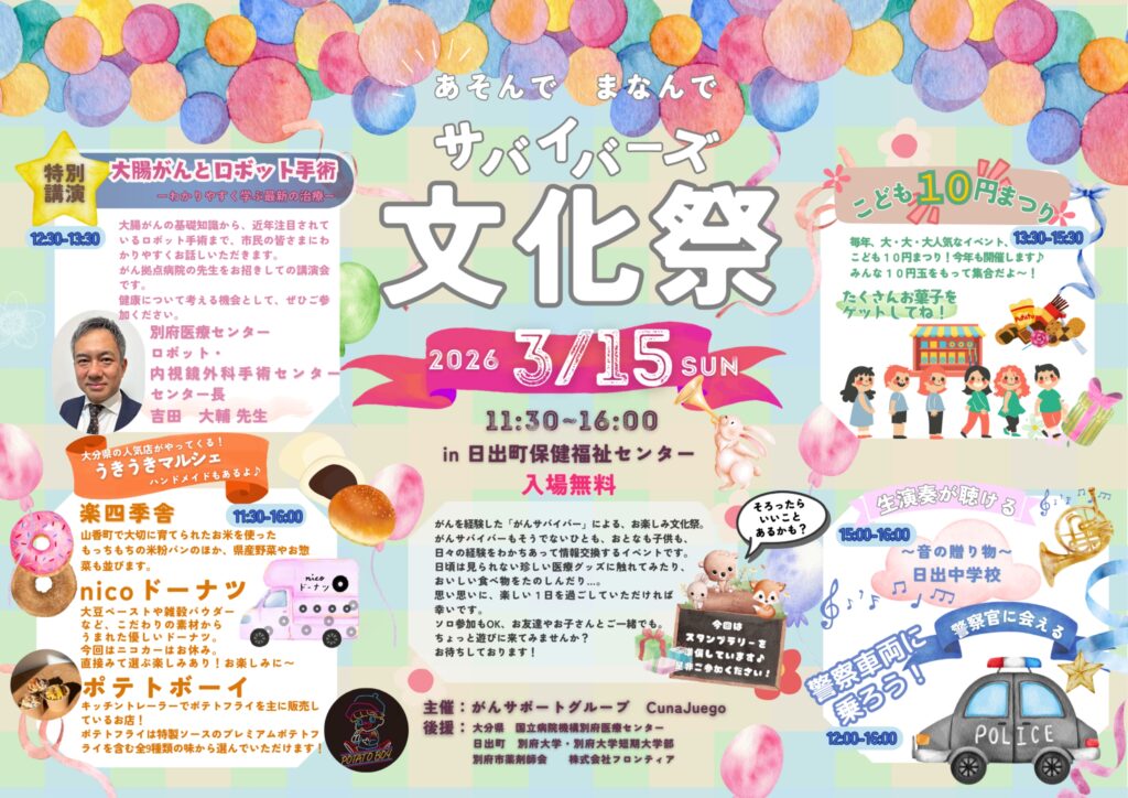 がんを経験した「がんサバイバー」による、お楽しみ文化祭が大分で行われます。